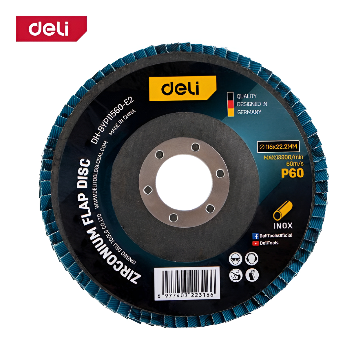 El Disco FLAP ZIRCONIO de 115 mm y grano 60 de la marca DELI es una herramienta esencial para quienes buscan un acabado profesional en trabajos de metal y acero. Con un diámetro de 115 mm y un espesor de 10 mm, este disco abrasivo está diseñado para ofrecer un rendimiento óptimo en diversas aplicaciones de corte.