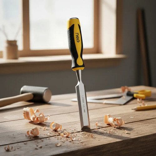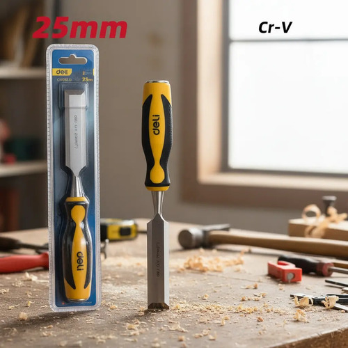 El formón de 25 mm de la marca DELI es la herramienta ideal para quienes trabajan con madera y buscan precisión y calidad. Su hoja rectangular, fabricada en acero Cr-V (Cromo Vanadio), garantiza durabilidad y rendimiento excepcionales en cada golpe, permitiendo obtener acabados limpios y detallados en tus proyectos.