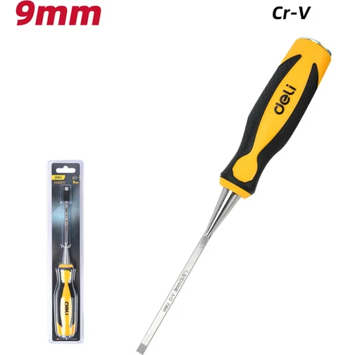 El formón Deli DL6209-E1 es una herramienta diseñada especialmente para aquellos que buscan precisión y durabilidad en sus proyectos de carpintería y ebanistería. Con un ancho de hoja de 9 mm, este formón es ideal para realizar cortes finos y detallados en diversas maderas, permitiendo acabados limpios y profesionales.