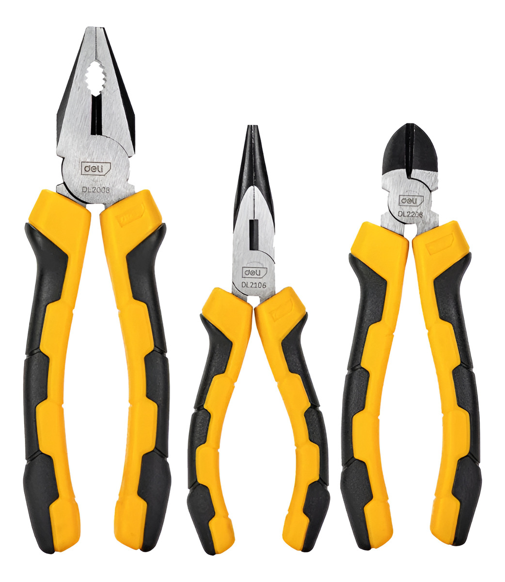 Optimiza tus proyectos de bricolaje y mantenimiento con el Juego de pinzas – alicates 3 pz de DELI. Este conjunto incluye alicates combinados, alicates de punta y alicates de corte, lo que lo convierte en una herramienta versátil y esencial para cualquier entusiasta del bricolaje o profesional del área.