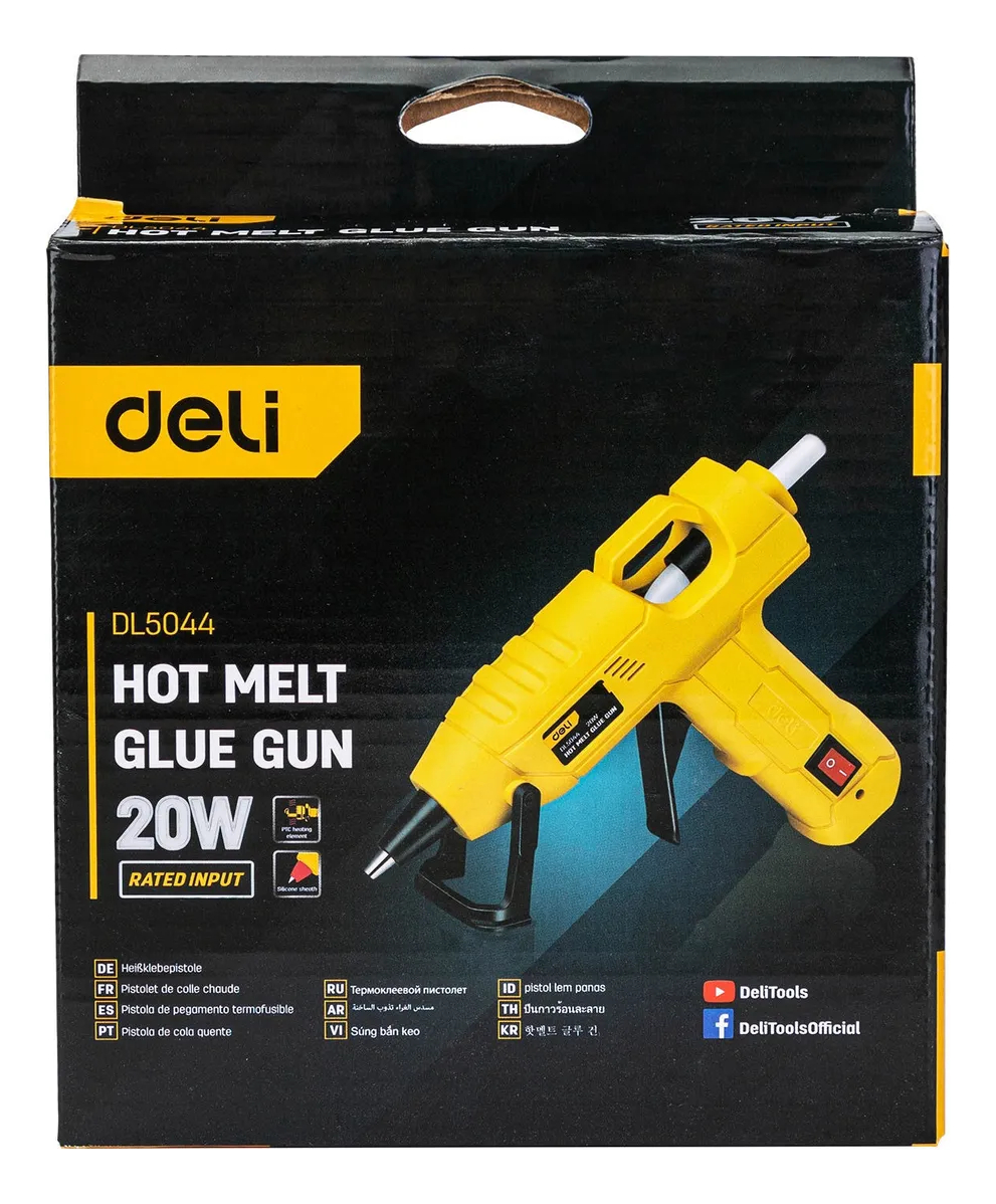 Ideal tanto para aficionados como para profesionales, la Pistola Silicona Caliente Deli DL5044 ofrece un rendimiento confiable donde sea que la necesites. Ya sea para ensamblar, reparar o crear, esta herramienta se convertirá en un aliado valioso para garantizar resultados duraderos y de calidad.