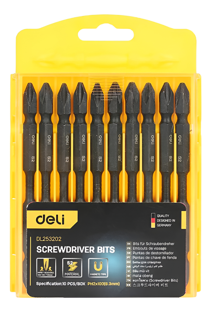 Potencia y precisión se combinan en las Puntas Para Atornillador De Impacto PH2x100mm de Deli. Diseñadas para satisfacer las exigencias de los usuarios más exigentes, estas puntas son la elección ideal para trabajos eléctricos que requieren una fijación segura y eficiente.