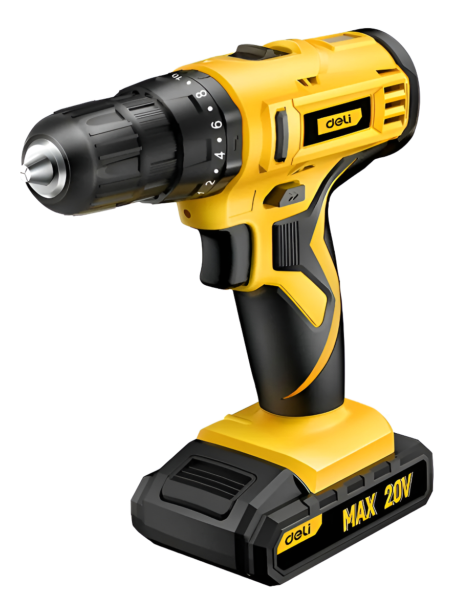 Especificaciones del taladro de impacto inalámbrico de iones de litio de 20 V de Deli Power Tools, 2000 mAh, uso duradero con ajuste de marchas 18+1