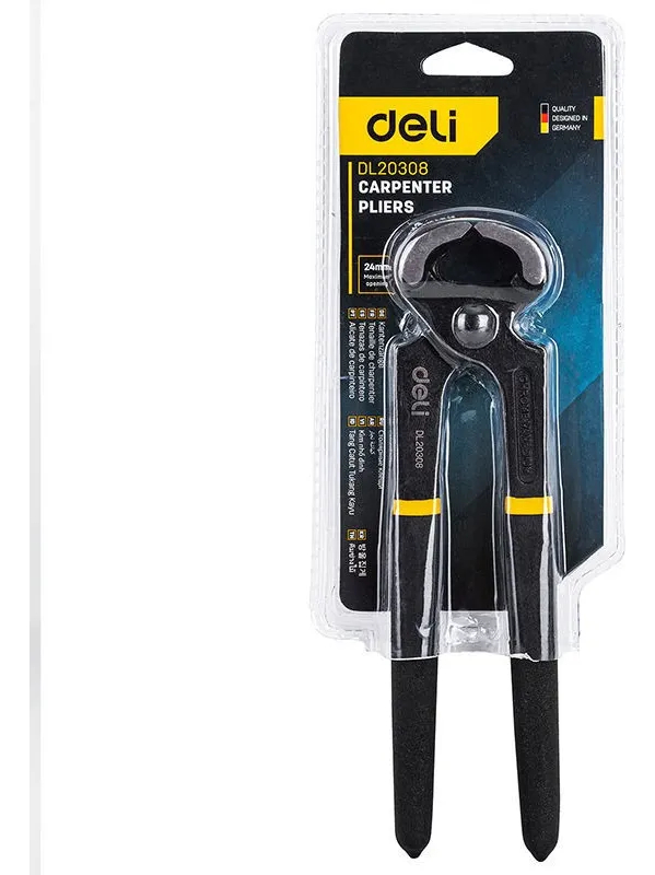 La tenaza de carpintero Deli modelo DL20308, con un tamaño de 8 pulgadas, es una herramienta esencial para cualquier aficionado al bricolaje o profesional del sector de la madera. Fabricada en acero cromo vanadio, ofrece una resistencia superior, garantizando una durabilidad excepcional que soporta el uso constante en la obra o el taller.