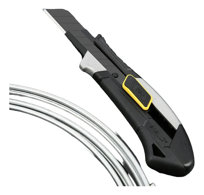 Descubra la Trincheta Aluminio 18 Mm Deli, una herramienta perfecta para quienes buscan precisión y durabilidad en sus trabajos de corte. Su diseño ergonómico, con un mango de aluminio y plástico, asegura un agarre cómodo y seguro, ideal para largas jornadas de uso. La traba de seguridad adicional proporciona tranquilidad al trabajar, evitando cortes accidentales.